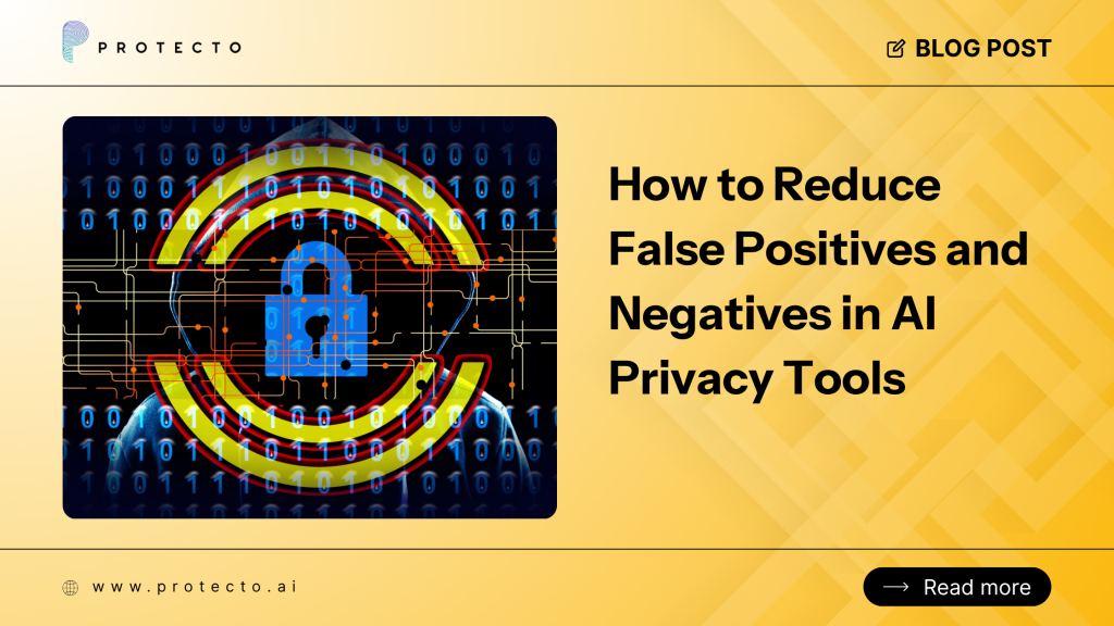 False positives occur when AI privacy detection tools incorrectly identify non sensitive data as sensitive. For example, the tool may tag “John Doe” in a public press release as PII, even though it’s not contextually sensitive or private.