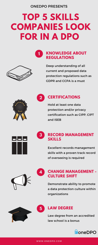 Here are the top 5 skills companies look for when they want to hire a DPO for their organization: