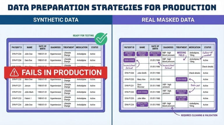 Synthetic data for AI looks fine in dev — until it hits production. Learn why real masked data beats synthetic for AI testing, RAG, and agent workflows....