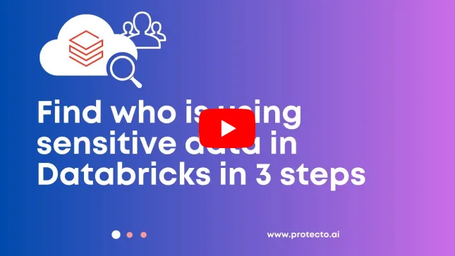 Protecto's data privacy intelligence identifies privacy risks by factoring usage, access, sensitivity, and risk associated with your Databricks instance - in just a few clicks.