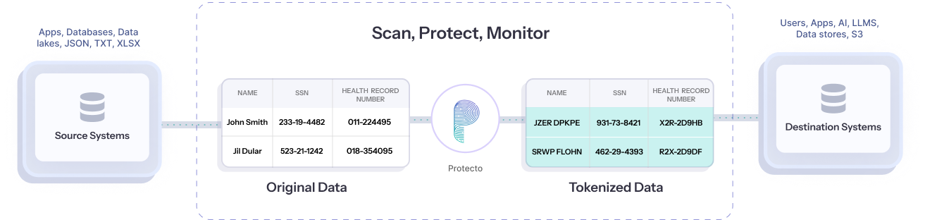 Protecto empowers you to tailor masking rules according to your specific requirements, ensuring maximum healthcare data privacy, flexibility and control over the process.